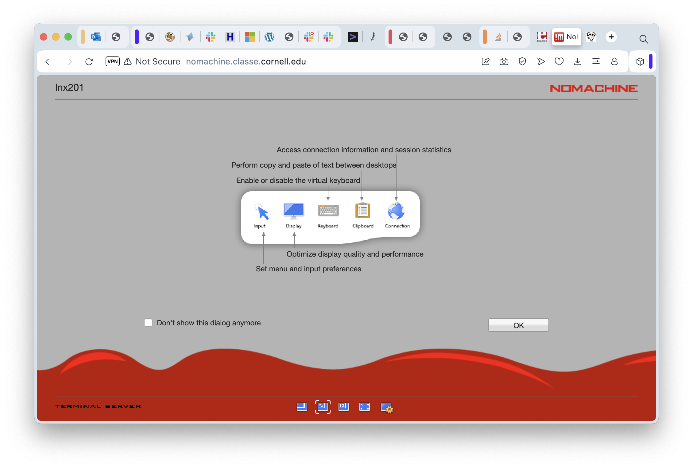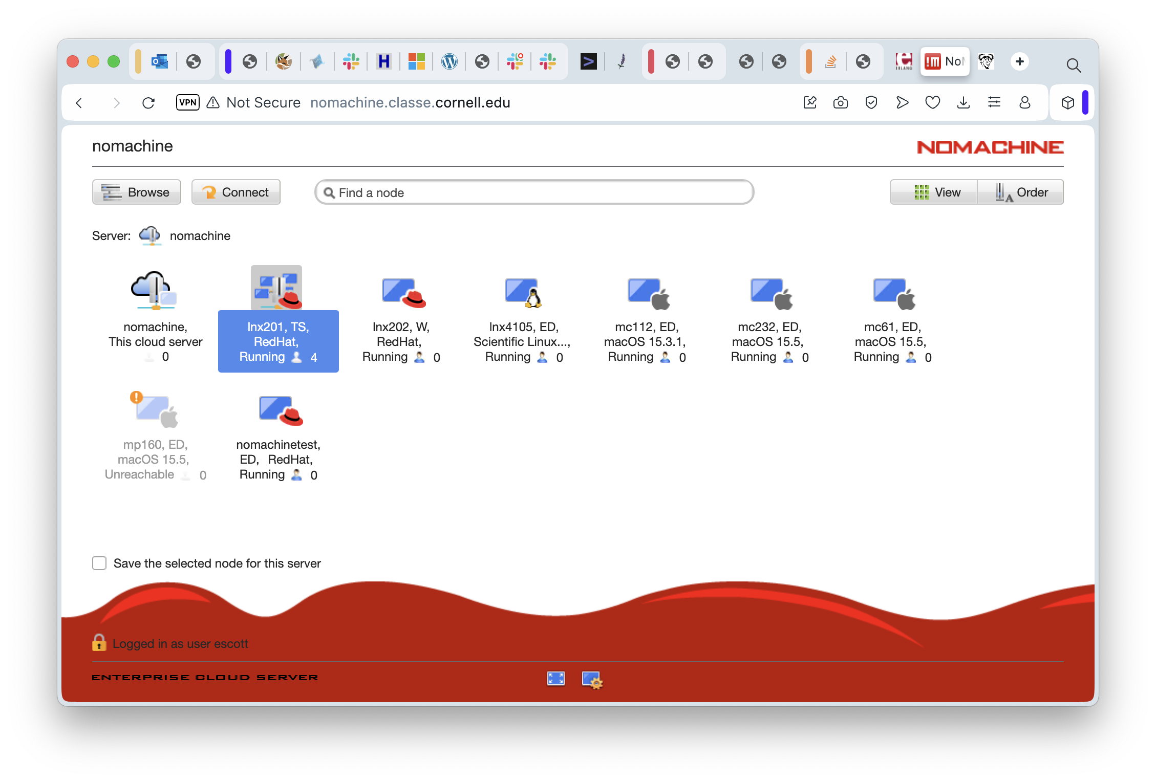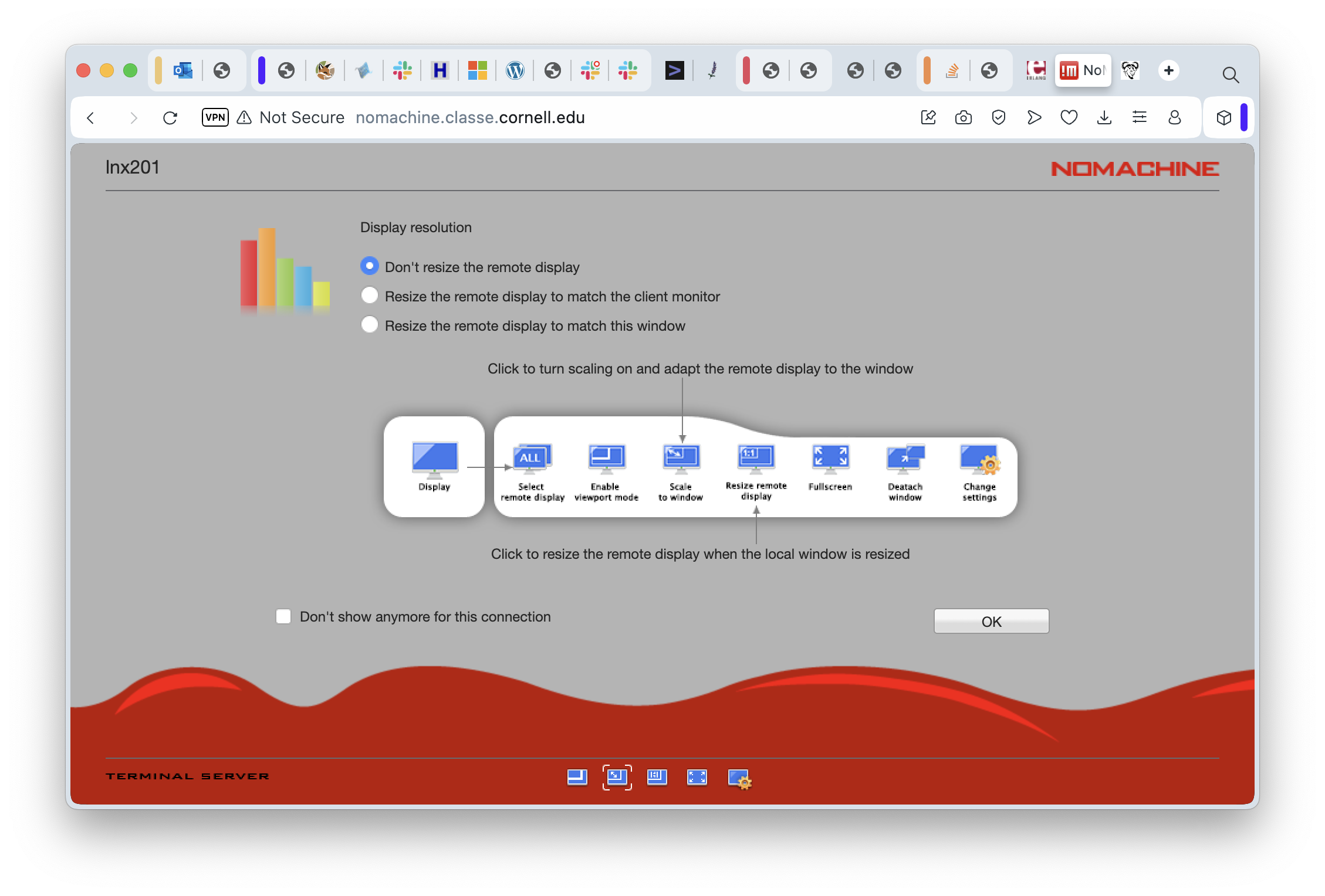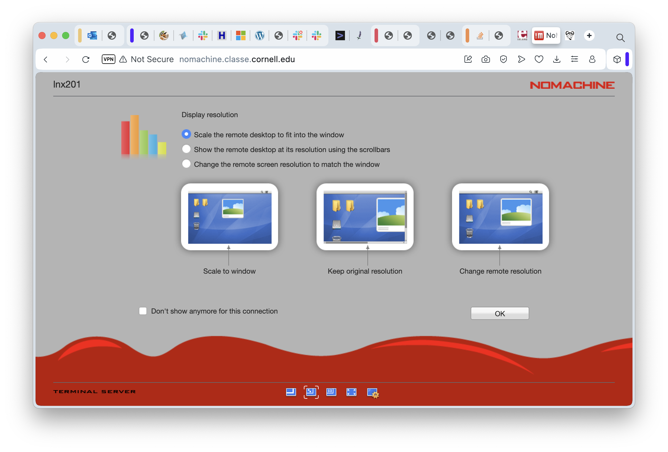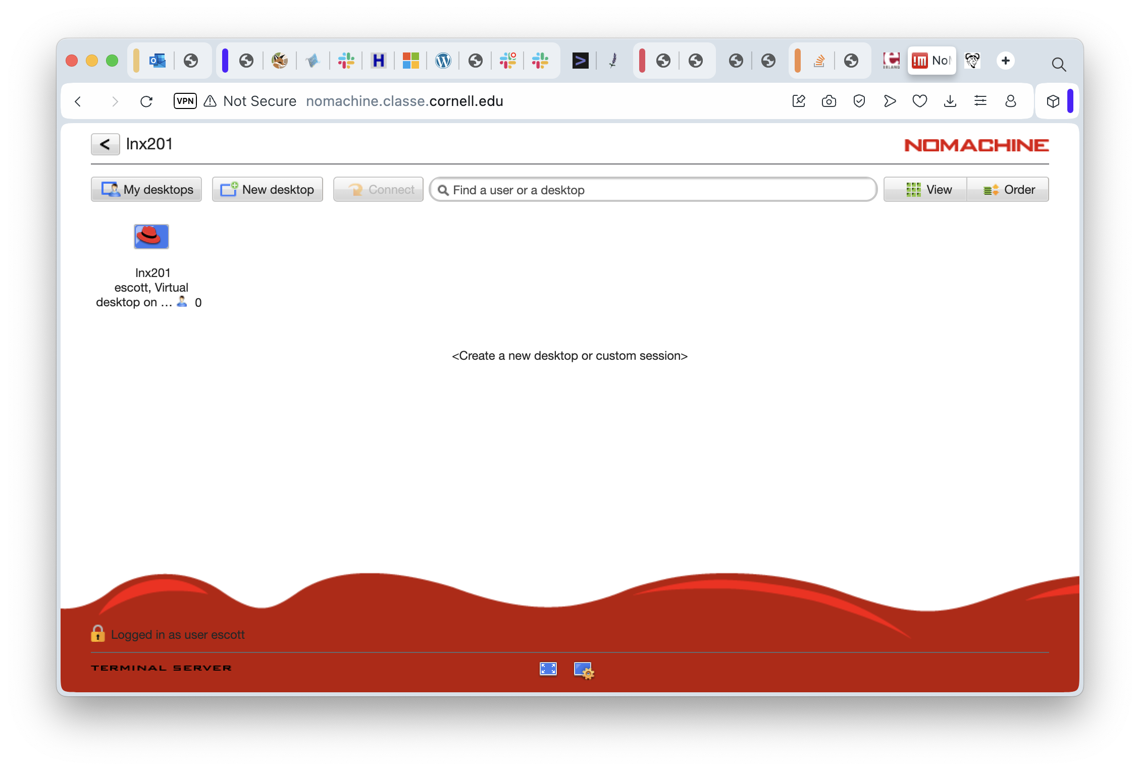 CHESS uses a software system called “NoMachine” for remote Virtual Desktop access. NoMachine has oodles (a scientific term) of features and configuration settings, but if you just want a basic Virtual Desktop that is good enough for all but a few special cases then you can just play on Easy Mode: use the web client that runs inside a browser and just take the default settings.