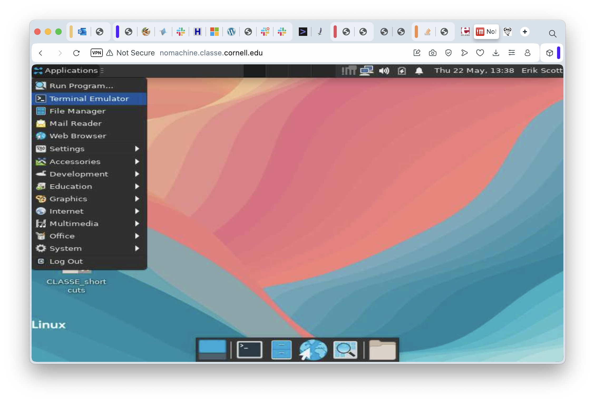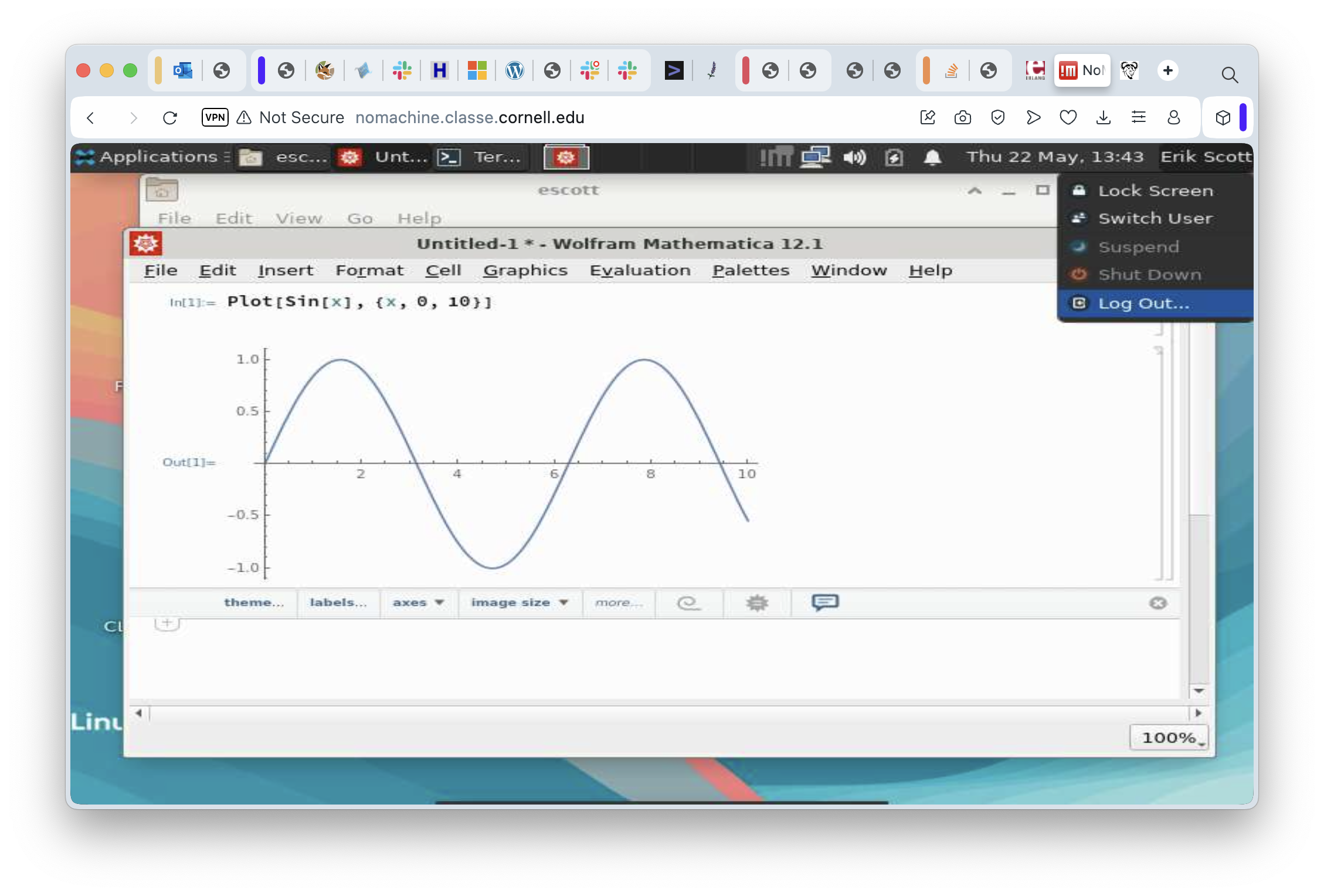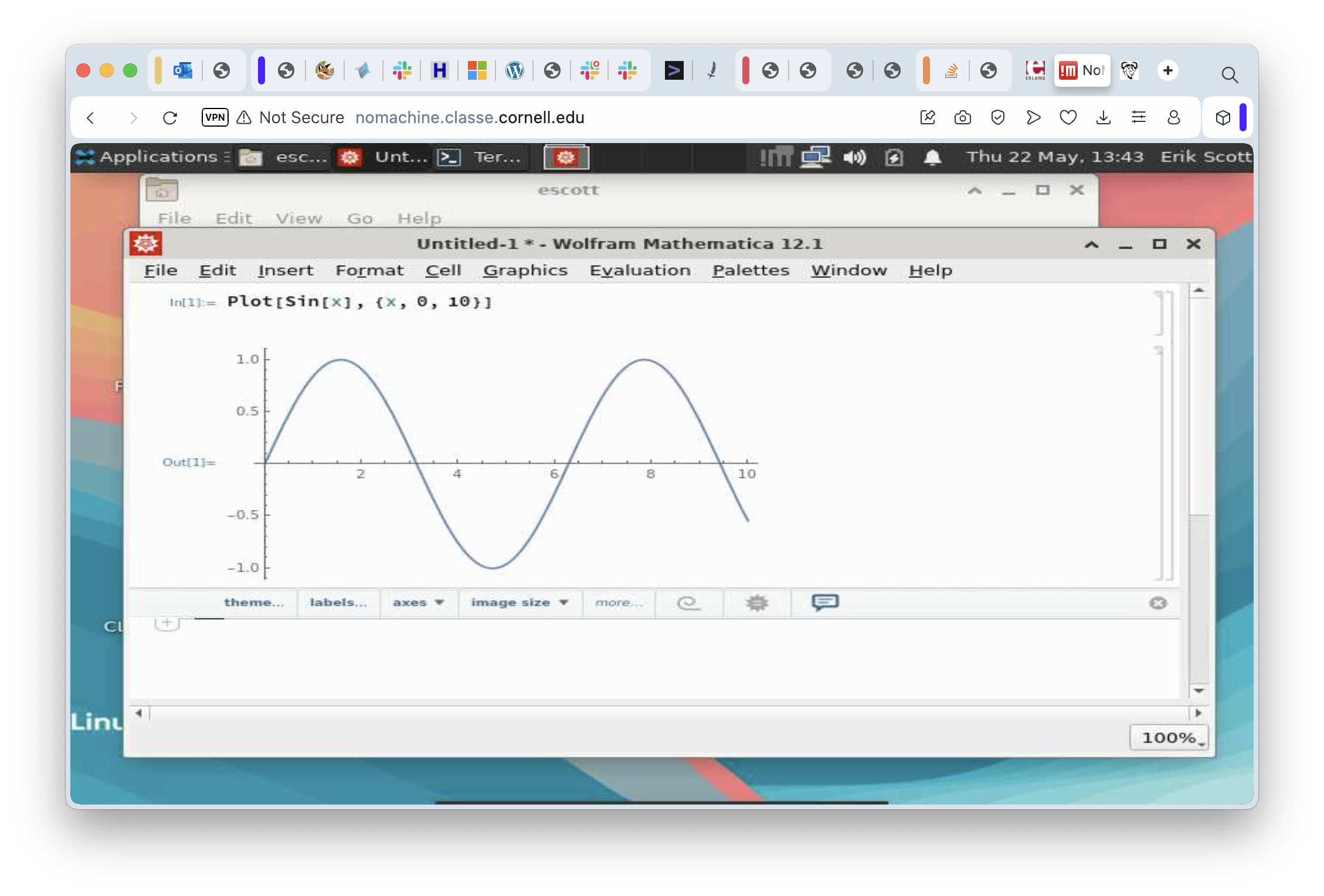 Quite a few applications are already installed in the Linux cluster, some of which can really take advantage of having graphics through a remote desktop environment. One example is Mathematica: