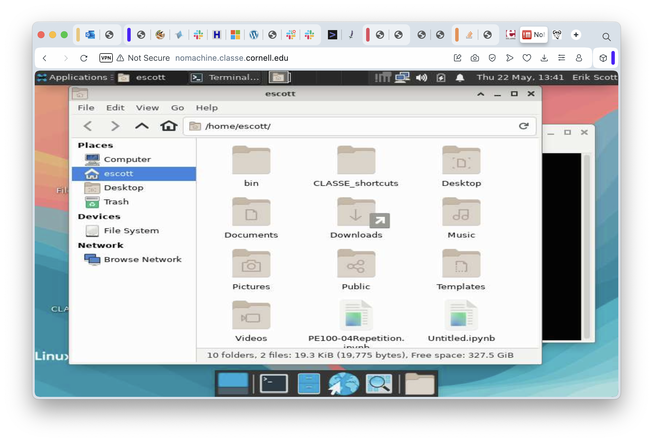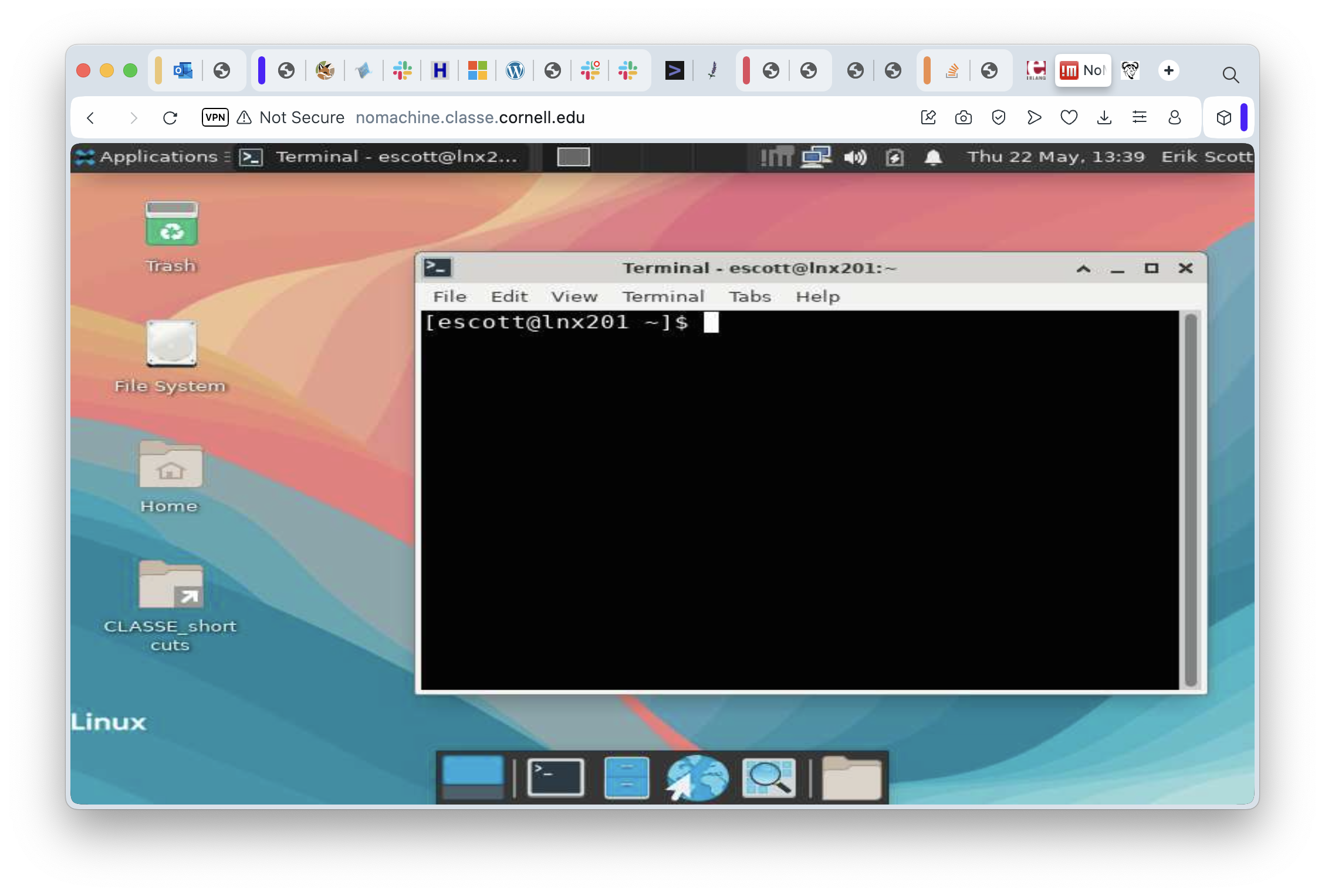 We’ve just looked at two very different ways to remotely access the CLASSE Linux servers that CHESS uses. The remote desktop approach, using NoMachine, has the advantage of being relatively easy to use and of fully supporting graphical programs but at the expense of potentially quite a bit of lag time between doing something and seeing the results on the screen. Using SSH, on the other hand, will usually feel more responsive and use less network bandwidth but is for command line use only - no graphics. Which one to use is a matter of deciding what tradeoffs are acceptable. If you’re on campus then bandwidth isn’t an issue. Use both - no one will judge you. If you’re out in the boondocks and getting network connectivity through a bad cellphone connection then you might want to use SSH.