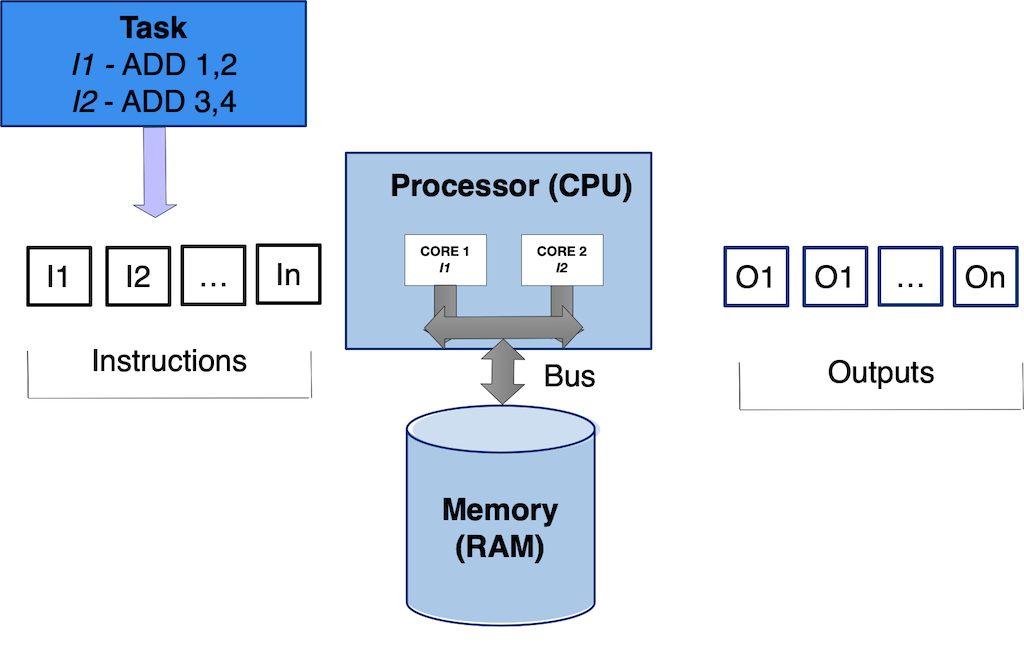 In parallel computing you can leverage multiple CPU’s or cores to execute your program. It involves breaking down a problem into smaller, independent sub-tasks that can be processed simultaneously by multiple processors or cores. Remember modern day processors/CPU’s are now comprised of multiple cores which can act independently, allowing use to execute instructions in parallel.