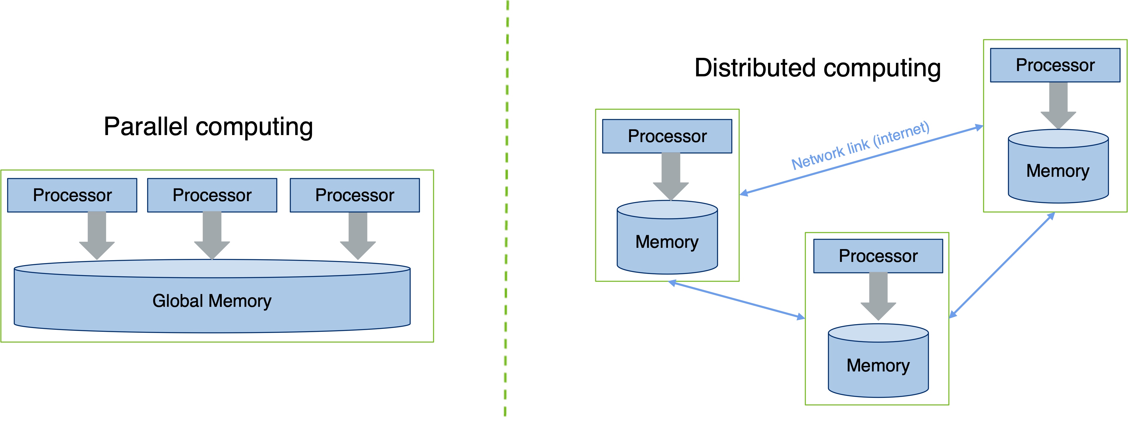 what data is shared and which is private to the process. Using MPI you can either use cores on a single CPU, or also use cores across multiple CPU’s in a high performance computing cluster, where the CPU’s are connected via a high speed network such as infiniband.